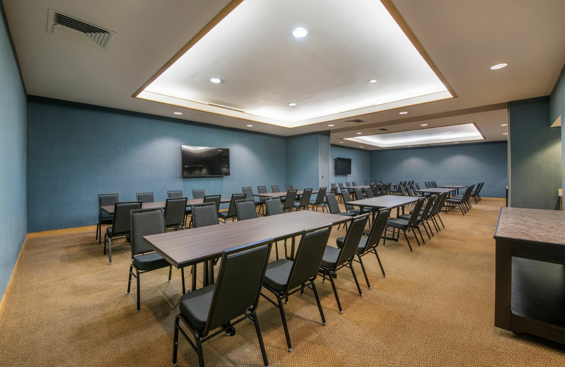 Our exhibit hall is right next to the main conference space with a view of the mountains!